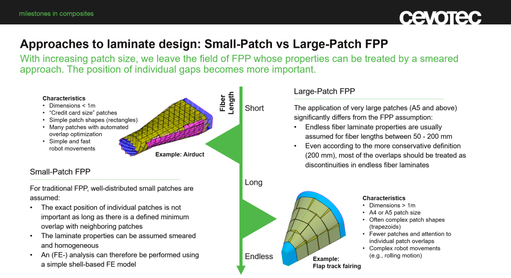 Ten years ago, Fiber Patch Placement primarily relied on small, rectangular patches – often hundreds or even thousands per laminate. The shape of each patch played only a minor role; the key design challenge was optimizing the overlaps between the many patches by shifting their position.